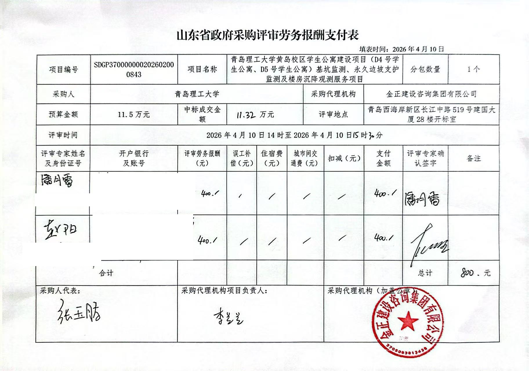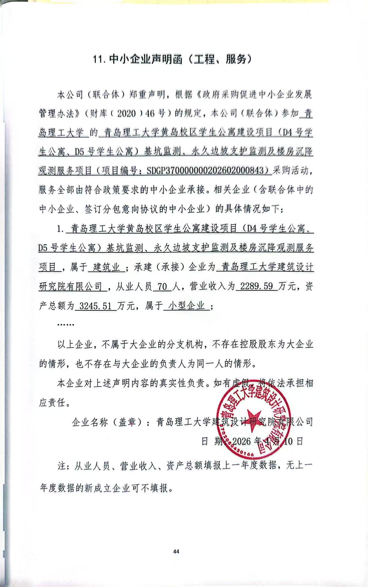 二、项目名称:青岛理工大学黄岛校区学生公寓建设项目(D4号学生公寓、D5号学生公寓)基坑监测、永久边坡支护监测及楼房沉降观测服务项目